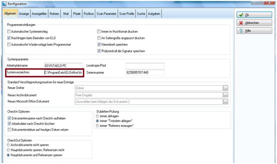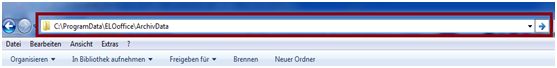 In ELOoffice 9.0 finden Sie über „Menü – Konfiguration – Allgemein“, in ELOoffice 8.0 unter „Systemverwaltung – Optionen – Allgemein“, das „Systemverzeichnis“. Kopieren Sie diesen Pfad in die Zwischenablage über „Strg + C“. Anschließend öffnen Sie den Windows Explorer und fügen in der „Adressleiste/URL-Leiste“ über „Strg + V“ den zuvor kopierten Pfad ein. Bestätigen Sie diese Eingabe mit der „Enter-Taste“ um an die Stelle des Archivdata – Verzeichnisses zu gelangen.