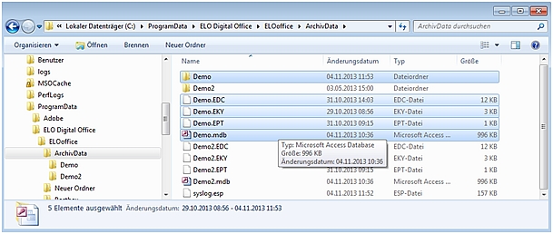 Eine ebenso einfach auszuführende wie effiziente Datensicherung (und Datenrücksicherung) kann für ELOoffice mit dem Windows-Explorer durchgeführt werden.