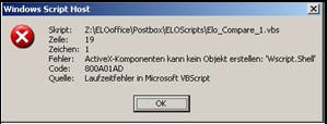 Sollten Sie diese oder eine ähnliche Fehlermeldung erhalten, so kann eines der ELO-Skripte kein ActiveX-Objekt erzeugen; in diesem Fall ist es das „Wscript.Shell“-Objekt.