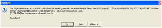 Ich erhalte die Fehlermeldung „Das folgende Dokument konnte nicht in den Volltext-DB … Open/Convert…“.