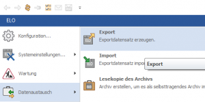 Klicken Sie im nächsten Schritt in ELOoffice auf ELO → Datenaustausch → Export.