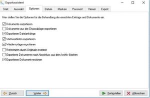 Bitte beachten Sie, dass der Datenexport je nach Größe des Archivs eine Weile in Anspruch nehmen kann und Sie in dieser Zeit nicht mit ELO arbeiten können!