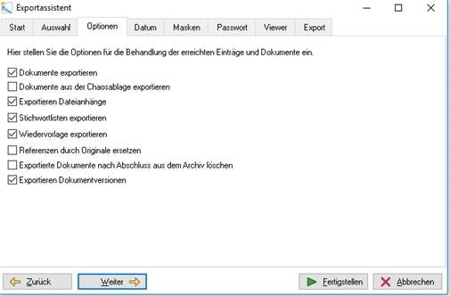 Unter dem Reiter Optionen setzen Sie dann bitte die im Folgenden abgebildeten Haken und klicken abschließend auf „Fertigstellen“.